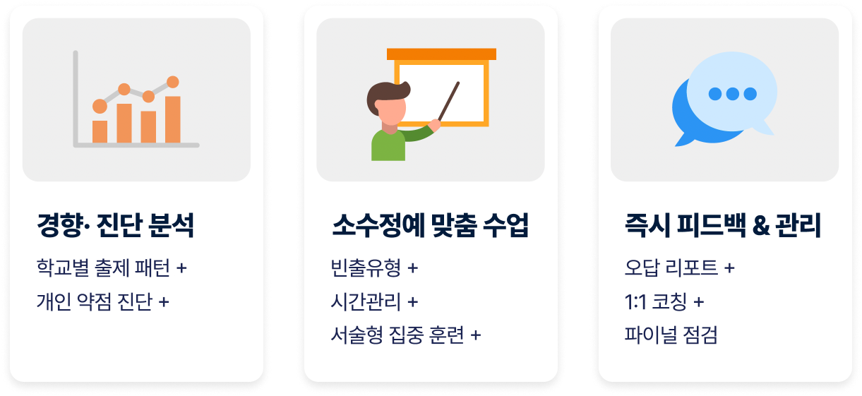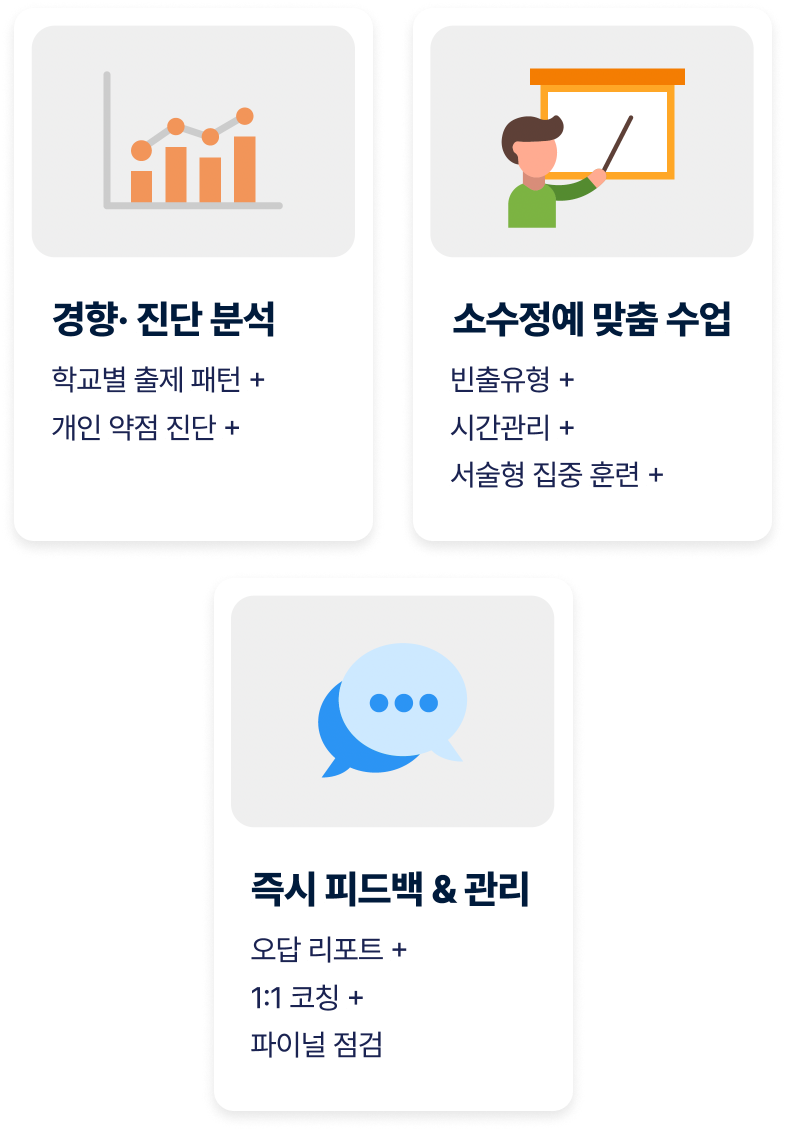 학교별 출제 경향에 맞춘 맞춤 관리로 내신을 완성하세요.
